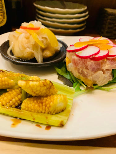 メバチマグロとホヤのタルタル、からすみ載せ。